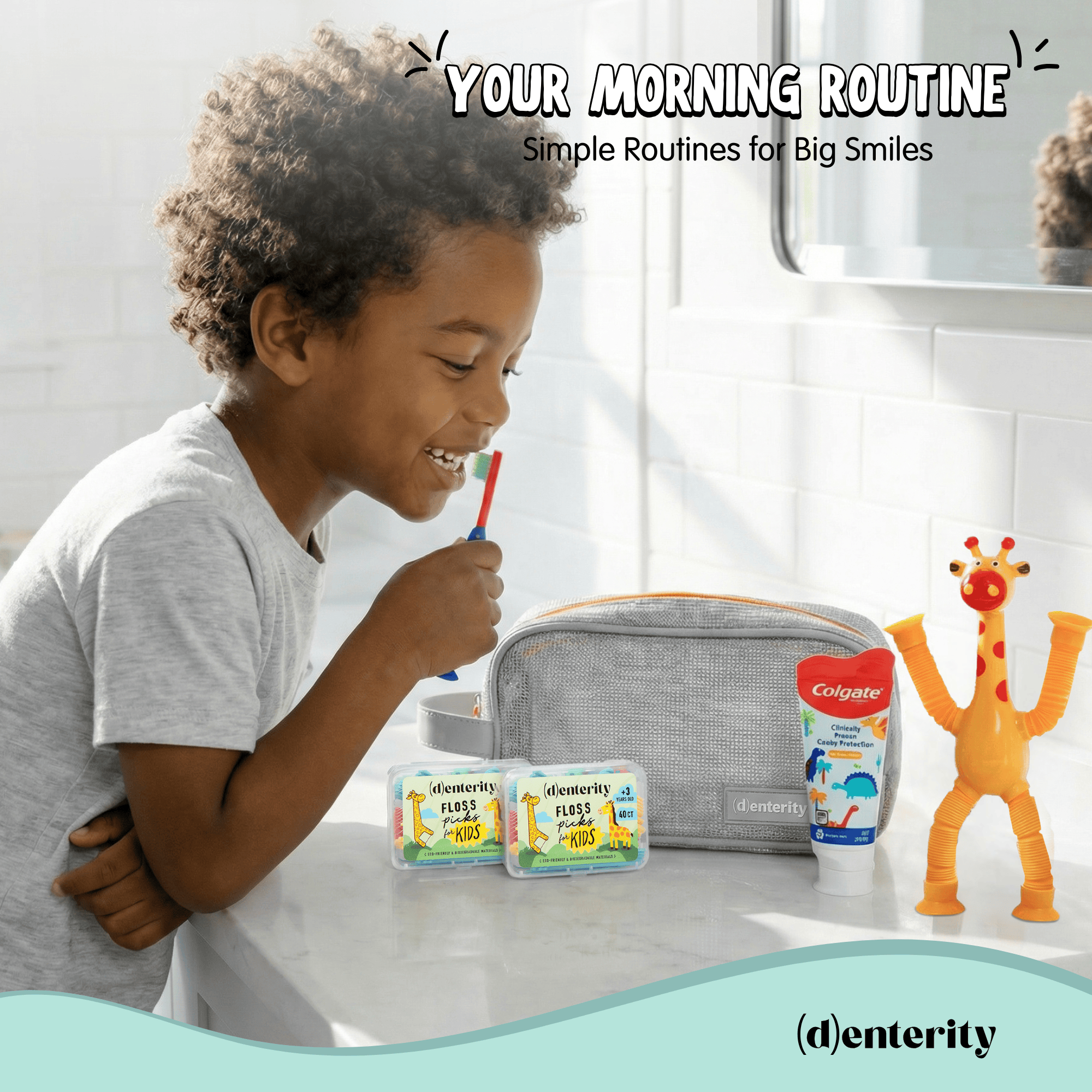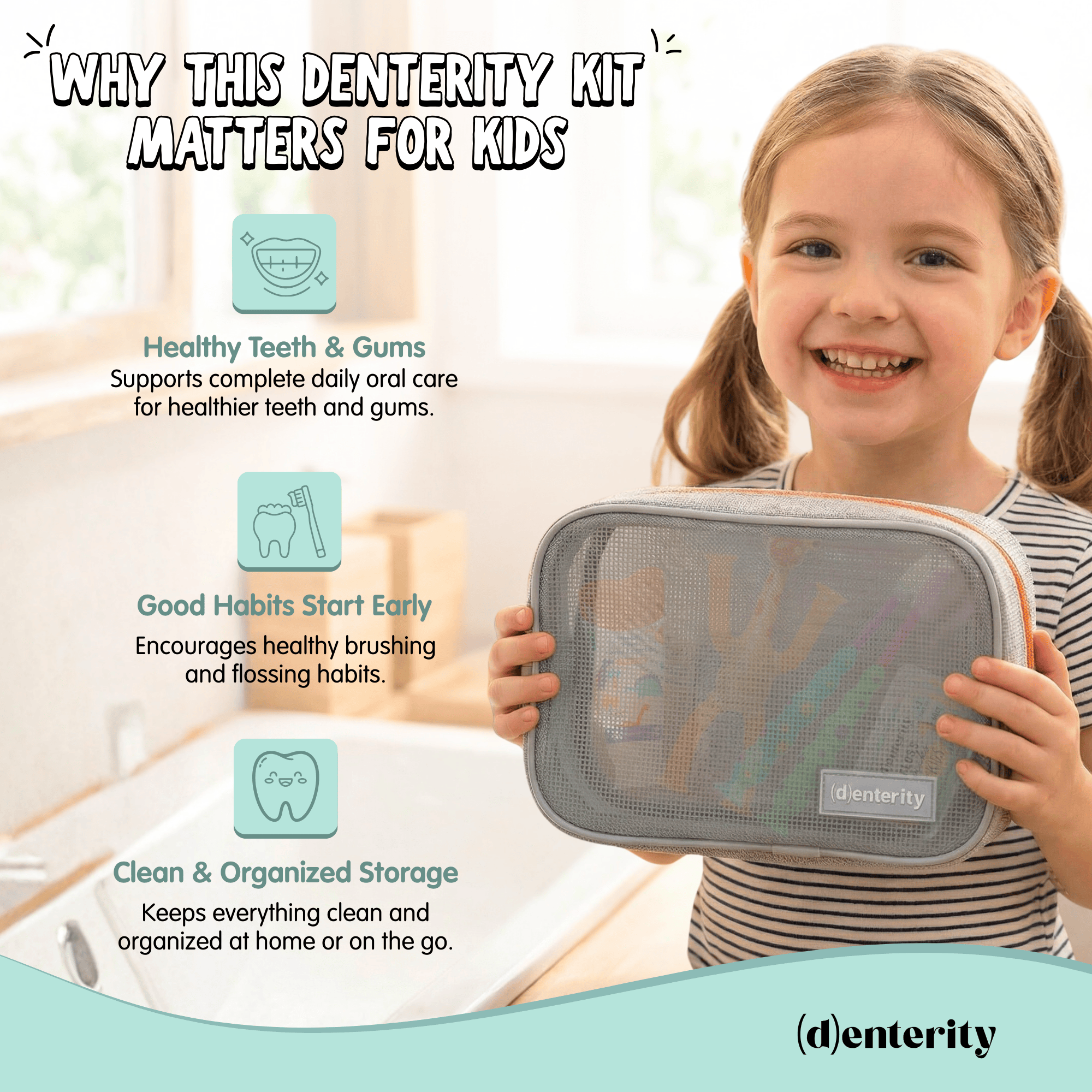The Denterity Kids Smile Starter Kit is designed to make oral care easy—not overwhelming. Because kids don’t need complicated routines to build healthy habits. They just need the basics, done consistently.