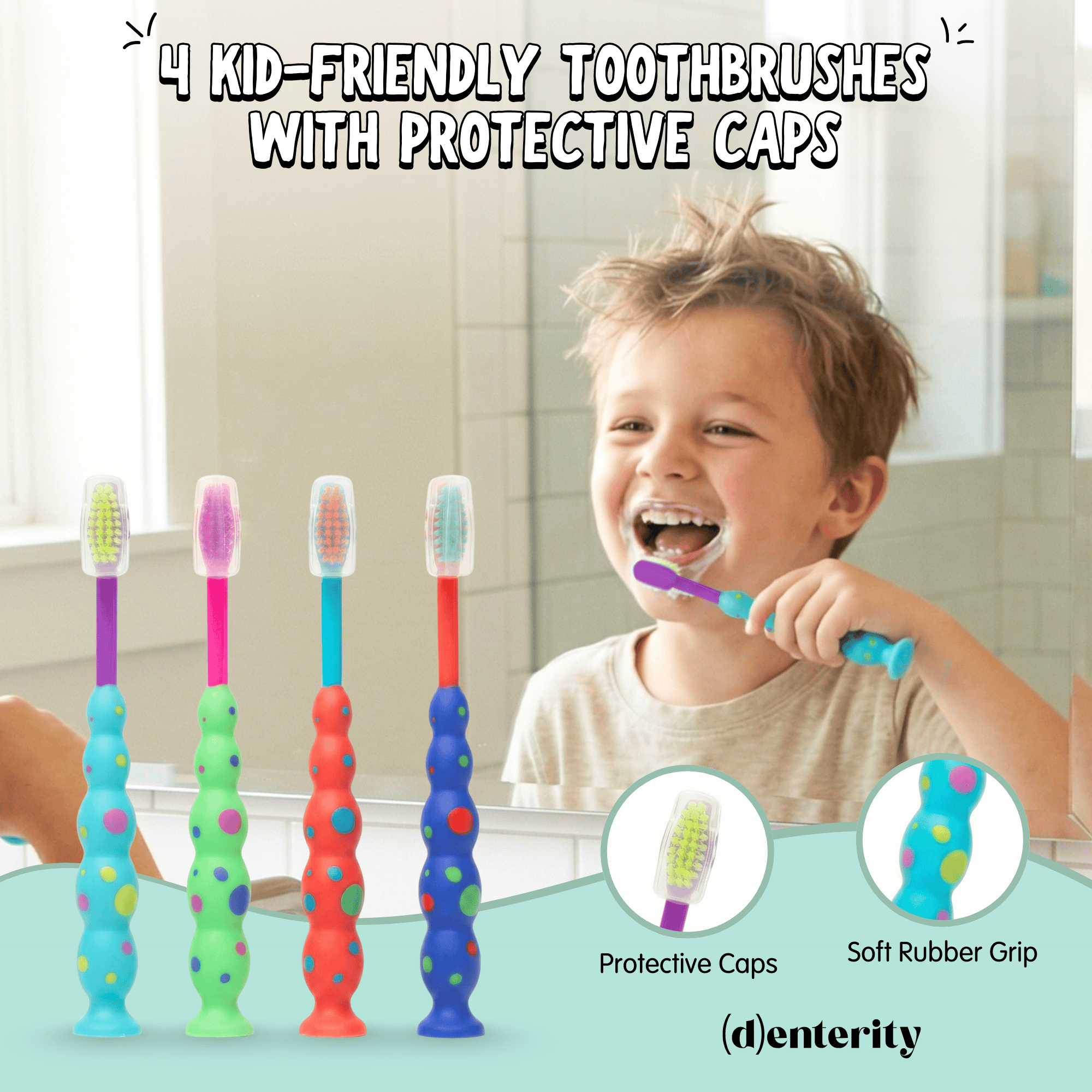 🪥 4 Kids Handheld Toothbrushes with Caps